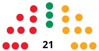 | Parties and alliances | Popular vote | Councillors | ||||