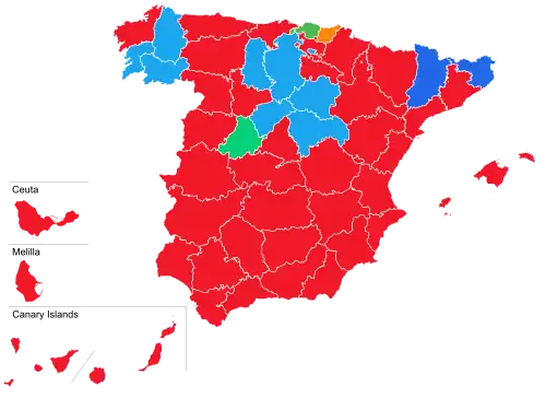 | Melilla | 42.2 | 1 | 29.5 | − | 9.0 | − | 2.1 | − | 3.2 | − | ||||||||||||||||||