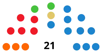 | Parties and alliances | Popular vote | Councillors | ||||