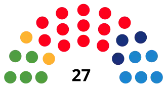 | Socialists' Party of Catalonia–Municipal Progress (PSC–PM) | 19,817 | 52.59 | −3.31 | 14 | −2 | |