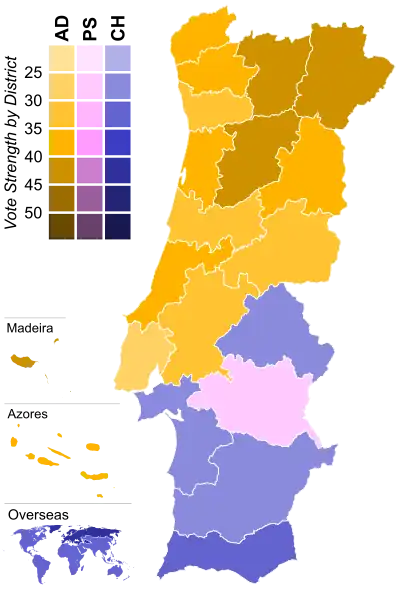 ^ a b c d e f g h i j k l m n o p q r s t u v w Compared with the 2024 Democratic Alliance (PSD/CDS/PPM)