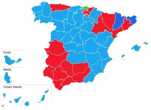 | Melilla | 56.1 | 1 | 37.5 | − | 0.5 | − | 3.3 | − | ||||||||||