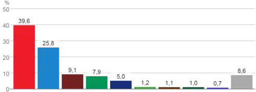 | People's Party (PP)1 2 | 5,285,972 | 25.79 | −0.18 | 107 | +2 | |