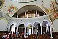 To the right of the grand marble staircase which leads to the church cathedral there is ample space for a bookstore and a store with church items. Meanwhile, to the left of the stairs are two rooms where youth groups and faithful can gather after church services. To the north, in front of the Conference and Cultural Center there is a small outdoor amphitheater, for use during summer months.