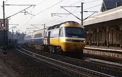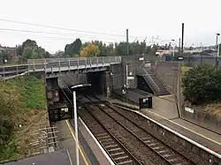 Retford railway station is on the East Coast Main Line serving the town of Retford, Nottinghamshire, England. It is 138 miles 49 chains (223.1 km) down the line from London King's Cross and is situated between Newark North Gate and Doncaster on the main line. It has four platforms, two of which serve the main line and the other two, located at a lower level and at right angles to the first pair, serve the Sheffield to Lincoln Line.