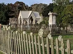 Rev. James's house was located next to the Gardiner house on what is now James Lane. The Meeting House, where Rev. James preached, was also located on the same property, which is now the South End Cemetery. The cemetery was originally the South End Burying Ground, and it was connected to the church or Meeting House. The whole area was fenced in for protection.[8] Rev. James also interacted with the local Native American population, the Montauks. He learned the Indian language and taught them the English language. The Indians sometimes even worshiped with him. The friendly relationship between the colonists and the Native Americans is in part what led the Sachem Wyandanch to consider an alliance with the town.[9]