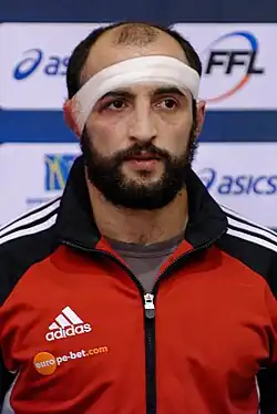 Revaz Lashkhi (Georgian: რევაზ ლაშხი; born 26 May 1988 in Borjomi, Georgia) is a Georgian Greco-Roman wrestler, who competed at the 2012 Summer Olympics[1] and won a silver medal in the men's Greco-Roman 60 kg category. He beat Sayed Abdelmoneim, then Zaur Kuramagomedov in the quarterfinal and Həsən Əliyev in the semi-final before losing to Omid Norouzi in the final.[2]