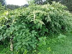 In some areas, Bohemian knotweed is classified as an invasive species and a noxious weed. It is illegal to transport and sell in multiple US states, including Minnesota,[1] Washington,[5] and Wisconsin.[6]