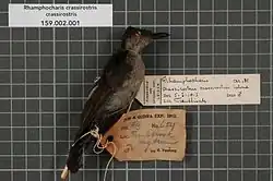 The thick-billed berrypecker (Rhamphocharis crassirostris) is a species of bird in the berrypecker and longbill family Melanocharitidae.[2] It is found in New Guinea. Its natural habitat is subtropical or tropical moist montane forest. The spotted berrypecker (Rhamphocharis piperata) was formerly considered conspecific (with both species being grouped under the common name "spotted berrypecker" but with the scientific name R. crassirostris), but it was split as a distinct species by the IOC in 2021.[3]