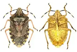 | Rhaphigaster nebulosa dorsal (left) and ventral (right) views | |