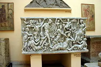 In the Museo Nazionale Romano there is a depiction of Rhea Silvia sleeping during the conception of Romulus and Remus in a Relief.[22]