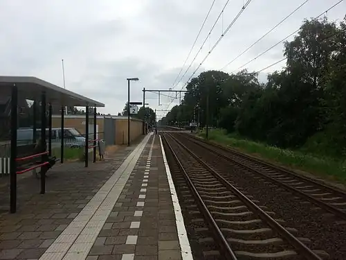 Rheden is a railway station located in Rheden, Netherlands. The station was opened in 1882 and is located on the Arnhem–Leeuwarden railway. The station is currently operated by Nederlandse Spoorwegen. The station closed on 2 October 1927 and reopened on 18 May 1952. The platforms are not located opposite each other, but on either side of the level crossing.