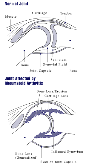 A diagram showing how rheumatoid arthritis affects a joint