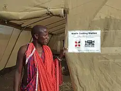 One of the main environmental challenges of organising an event with close to 3,000 participants and spectators in the most remote wilderness areas of Kenya is the management of waste. Keeping with Rhino Ark's conservation mission, the Rhino Charge Committee is committed to leaving each venue as it was found. To this end, stringent rules have been set by the Committee to ensure that no waste is left in the entire Rhino Charge venue. This includes a fine system that is strictly implemented to address wastes by competitors. In addition, with the support of key sponsors, wastes are collected across the venue, including in the Spectator Camp and at the Gauntlet. To promote waste recycling, a Waste Sorting Station is set up at the venue. Glass, cans and tins, plastic bottles, among others, are separated and brought back to Nairobi for recycling. In the 2013 event, almost 50 cubic metres of waste were properly sorted and removed from the venue for recycling.[11]