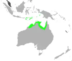 The Arafura fantail (Rhipidura dryas), sometimes known as the wood fantail, inhabits the Lesser Sunda Islands, the northern coast of Australia from the Kimberley to the western side of the Cape York Peninsula, including subcoastally in the Top End of the Northern Territory, and southern New Guinea. It is similar to the rufous fantail, from which it has been split taxonomically but, apart from minor overlap in the eastern Moluccas, their geographic ranges are discrete. It is generally duller than the rufous fantail with the rufous colouration more restricted.[2][3]