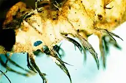 Rhizohyphae are a type of attachment structure on some lichens. Rhizohyphae are more slender than rhizines and are one cell thick in diameter. Rhizohyphae often occur as a felt-like hyphal mass.[2]
