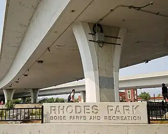 Rhodes Park, also known as Rhodes Skatepark, is a 1.28-acre (0.52 ha) skatepark between 15th and 16th Streets under Interstate 184 in Boise, Idaho, USA. The park is managed by the Boise Parks and Recreation Department and includes skateboarding and parkour challenges.[1]