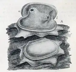 | Rhodosoma callense (Lacaze-Duthiers, 1865) (magnification x 10); A. "valve" open; B. shut; a) branchial orifice; b) atrial orifice | |