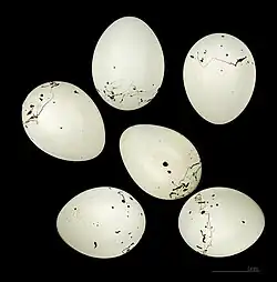 It feeds on seeds and the occasional insect. Nesting occurs in trees in the spring, often in fruit trees in orchards, and the female lays and incubates 4 to 6 pale green, lightly speckled eggs.