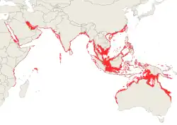 Rhynchobatus australiae, also called the white-spotted guitarfish, white-spotted wedgefish or bottlenose wedgefish, is a species of fish in the Rhinidae family.[1] It is found from shallow waters to a depth of at least 60 m (200 ft) in the Indo-Pacific, ranging from the East African coast and the Red Sea, to Taiwan, the Philippines and Australia.[3] It is part of a species complex that also includes the giant guitarfish, the broadnose wedgefish and possibly the smoothnose wedgefish.