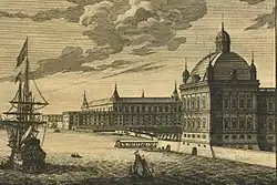 Ribeira Palace (Portuguese pronunciation: [ʁiˈbɐjɾɐ]; Portuguese: Paço da Ribeira) was the main residence of the Kings of Portugal, in Lisbon, for around 250 years. Its construction was ordered by King Manuel I of Portugal when he found the Royal Alcáçova of São Jorge unsuitable. The palace complex underwent numerous reconstructions and reconfigurations from the original Manueline design, ending with its final Mannerist and Baroque form.