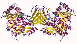 - ^ Sigrell JA, Cameron AD, Jones TA, Mowbray SL (February 1998). "Structure of Escherichia coli ribokinase in complex with ribose and dinucleotide determined to 1.8 A resolution: insights into a new family of kinase structures". Structure. 6 (2): 183–93. doi:10.1016/s0969-2126(98)00020-3. PMID 9519409.