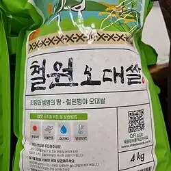 Cheolwon Odae(철원오대 쌀) rice is rice produced on land near the Demilitarized Zone in Cheolwon, Gangwon-do. Rice grains are larger than other rice, and the aging of rice is slow, so the taste can be maintained for a long time. Cheolwon Odae rice has a unique savory and sweet taste. It is also characterized by a white dot next to the grain of rice. It is cultivated on the Cheolwon plain, which is composed of highly nutritious basalt inorganic ocher soil. Cheolwon has significant daily temperature fluctuations, so can grow sticky rice.[6]