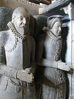 Richard Bampfield, detail from his effigy in Poltimore Church | |