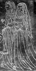 - Gertrude Bampfield, sixth daughter, wife of Henry Hurding[13] (died 1627) of Long Bredy, Dorset, by whom she had two daughters, including Elizabeth Hurding (died 1668)[14] who married firstly John Coffin (died 1622),[15] of Portledge, lord of the manors of Alwington and Monkleigh, and secondly Hugh Prust (died 1666)[14] of Annery, Monkleigh. She is depicted on her husband's surviving mural monument in Monkleigh Church, Devon, etched as a kneeling lady with four kneeling girls behind, on a slate tablet inscribed: