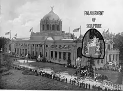 Three years in school at the Berlin Academy studying with Schaper was followed by more studying at the École des Beaux-Arts in Paris under Alexandre Falguière and then a tour of Florence, Italy.[2][3] In 1891 he returned to his American hometown of Chicago to establish a permanent sculpture studio downtown.[4] Almost immediately upon Bock's return to America, he received three major commissions. For the World's Columbian Exposition in 1893, he sculpted major architectural works for two of the event's primary buildings, the Mining and Electricity Exposition Halls. He took on a 14-year-old apprentice, James Earle Fraser, who would later design the famous sculpture The End of the Trail and the Buffalo nickel.[5]