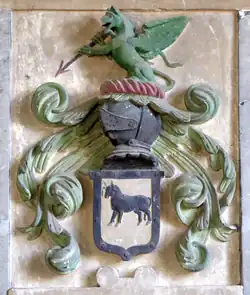 According to the Devonshire historian Risdon (died 1640), Richard Cole sold the estate of Slade, which had been the seat of his Cole ancestors from the reign of King Edward II (1307–1327), which soon afterwards became a seat of the Savery family.[18] According to the Devonshire historian Pole (d.1635), Richard Cole "conveyed this land" (i.e. Bucks and Wallen) "unto .... Cole of London, as I have bine enformed".[4] This was his second cousin[19] Gregory Cole (d.1660), a lawyer of the Middle Temple,[20] and of Petersham in Surrey, who founded a second line of the Cole family at Bucks and at Enstone in Oxfordshire. The large and elaborate monument of George Cole (d.1624) of the Middle Temple, Gregory's father, survives in Petersham Church. The estate of Bucks remained in the Cole family until 1802, on the death at the age of 96 of Rev. Potter Cole[20] (1705-1802),[21] a grandson of Gregory Cole and the last in the male line, Rector of Hawksbury in Gloucestershire for over seventy years. Potter Cole bequeathed Bucks to his nephew Rev. William Loggin of Long Marston in Gloucestershire, who in accordance with the bequest assumed the name and arms of Cole by Act of Parliament on 26 June 1802,[21] and was the father of the Rev. William Loggin, the owner of Bucks in 1822.[22]