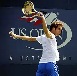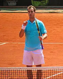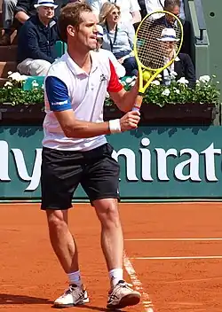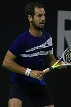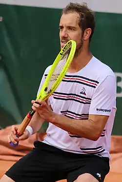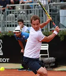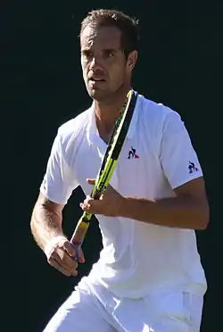 Richard Gabriel Cyr Gasquet (French: [ʁiʃaʁ ɡaskɛ];[3] born 18 June 1986) is a French former professional tennis player. He was ranked as high as world No. 7 in men's singles by the ATP, attained in July 2007.[4] Gasquet won 16 singles titles on the ATP Tour, and earned over 600 career match wins.[5][6] His best performances in major singles tournaments were three semifinal appearances, two at the Wimbledon Championships (in 2007 and 2015) and one at the US Open (in 2013). His best performance in ATP Masters 1000 tournaments tournaments was runner-up finishes in Hamburg in 2005 and Toronto in 2006 and 2012. Gasquet won the mixed doubles title at the 2004 French Open, partnering Tatiana Golovin, and an Olympic bronze medal in men's doubles at the 2012 London Olympics, partnering Julien Benneteau. Gasquet was best known for his elegant groundstrokes and his one-handed backhand.