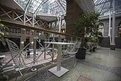 A main objective in the architecture is to create an open concept space, and therefore the creation of a T-shaped galleria. The design of the building preserved each of the four building's historic character and individuality while the glazing was designed in a neutral manner.[10]