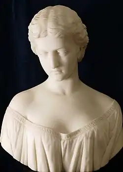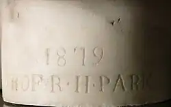 During his time in Florence, Park was commissioned to prepare a marble bust of John Plankinton, an astute businessman who founded the meat industry in Wisconsin and was respected as "Milwaukee's foremost citizen". Plankinton was known for religious convictions, his success from a modest upbringing, and for his regular philanthropic public deeds; he became known as "A Merchant Prince and Princely Merchant".[7] Plankinton's daughter, Elizabeth, travelled to Europe in 1879, and met Park in Florence. On return to Milwaukee, Elizabeth convinced her father to let her commission Park to sculpt the first piece of public art for Milwaukee, a monument to George Washington.[8] Park worked on the monument to Washington in Florence, and it was completed and shipped to Milwaukee for its dedication in November 1885;[9][10] Elizabeth donated it to the city of Milwaukee as a philanthropic gesture.[8] At some point, Park and Elizabeth Plankinton became engaged, and in 1886 John Plankinton commenced construction on a mansion to be a wedding gift for his only daughter.[11] On 18 September 1887, Park married another woman,[12] a dancer from Minneapolis,[10] shortly after his Juneau Monument (in recognition of Milwaukee's first Mayor, Solomon Juneau) was dedicated.[13] When Elizabeth learned of Park's marriage, she left on a long trip to Europe. On her return, she took her only look at the mansion her father had built, and is said never to have set foot in it again.[14]