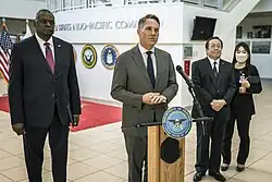 On 19 June 2024, Marles, Wong and Minister for International Development and the Pacific Pat Conroy attended the 30th Australia-Papua New Guinea Ministerial Forum in Port Moresby.[31] During the visit, Marles acknowledged the 2024 Enga landslide that occurred in late May 2024 and confirmed that the Australian delegation would travel there. The Albanese government also confirmed plans to sign a bilateral security agreement with Papua New Guinea.[32]