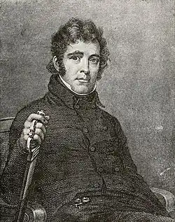 On April 4, 1818, an act of Congress requested that the President of the United States present to Johnson a sword in honor of his "daring and distinguished valor" at the Battle of the Thames.[74] The sword was presented to Johnson by President James Monroe in April 1820.[75] Johnson was one of only 14 military officers to be presented a sword by an act of Congress prior to the American Civil War.[76]