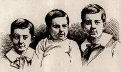 Richard Bland married Virginia Elizabeth Mitchell of Rolla on December 19, 1873. Mrs. Bland was the daughter of Confederate General Ewing Young Mitchell.[4] The couple had a total of nine children,[4] six that were still living at the time of his death: Theodric, Ewing, Frances, John, George, and Virginia. The Blands marriage was somewhat unusual for the time period, he being Protestant and son of a trained Presbyterian minister, and she being Catholic.[4] The children were raised in the Catholic faith, something which along with his marriage led to derision and bigotry by opponents during his 1896 bid for the Democratic presidential nomination.[4] Replying to critics, Bland stated "Yes my wife is a Roman Catholic and I am a Protestant, and shall live and die one; but my regret is that I am not half such a Christian as the woman who bears my name and is the mother of my children."[4]