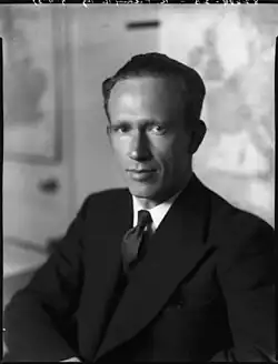 In 1935 he resigned his commission to enter politics and was elected as Member of Parliament (MP) for Widnes in Lancashire.[5] He served as Parliamentary Private Secretary to Oliver Stanley.[6] On the outbreak of the Second World War he rejoined the Army and travelled to France with the British Expeditionary Force.[7] He was awarded the Military Cross after returning with one of the last groups from Dunkirk in 1940.[8]