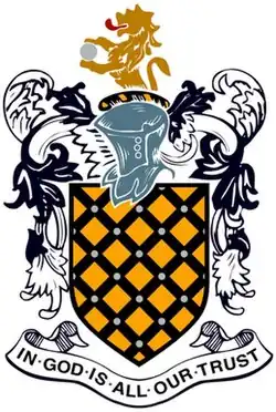 Platt's coat of arms was blazoned "or fretty sable plattée", with a crest of "a demi-lion rampant proper holding in the paws a plate".[1]