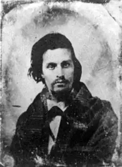 After arriving in the U.S., Realf explored the slums of New York City, became a Five Points missionary, and assisted in establishing there a course of cheap lectures and a self-improvement association. In 1856 he accompanied a party of free-state emigrants to Kansas, where he became a journalist and correspondent of several Eastern newspapers. He made the acquaintance of John Brown, accompanied him to Chatham, Ontario, Canada, and was to be Secretary of State in the provisional government that Brown projected. The movement being deferred for two years, Realf made a visit to England and a tour in the Southern states. When Brown made his attack on Harpers Ferry in October 1859, Realf was in Texas, where he was arrested and sent to Washington, D.C., being in imminent danger of lynching on the way.[1][2]
