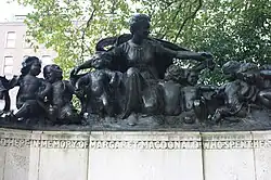 | Memorial to Margaret Ramsay MacDonald | Lincoln's Inn Fields | Goulden created a bronze for this memorial to commemorate Ramsay MacDonald's wife Margaret MacDonald who was a social reformer and suffragette. She was well known for her charity work with the young. In Goulden's composition an angelic figure is surrounded by nine cherubic children. Margaret died before her husband became Prime Minister, and their daughter Isabel served as hostess for her father at No. 10.[10][11] See photographs in gallery below. |