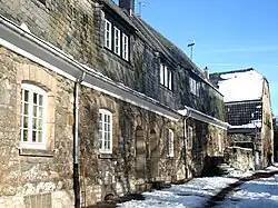 At the United Workshops in Hellerau, Riemerschmid developed a programme of machine production of art furniture. For example, a chair in his "music room" exhibit at the German Art Exhibition in Dresden in 1899 was so popular, the Workshops immediately placed it in production, it was also being manufactured and sold by Liberty's the next year, and it was widely copied.[24] He subsequently expanded this to the production of house kits. One such house, ordered in 1922 at an exhibition and erected in 1923 in Rodenkirchen near Cologne from 4,000 parts, mostly wood but including tiles and heating stoves, was disassembled and stored in Leverkusen in 1978. In 1984 the State of North Rhine-Westphalia declared it a landmark, and research revealed that it was the only example of the model ever built. A grandchild of the original purchaser had the pieces moved in 2004 to Simbach am Inn, Bavaria and reassembled there at considerable cost, assisted by the Deutsche Stiftung Denkmalschutz (German Foundation for Landmark Protection).[25]