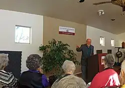 In 2000, Rohr publicly endorsed Soulforce, an organization that challenges what it calls religion-based LGBTQ oppression through nonviolent protest.[32] In a 1999 essay and afterward, Rohr has welcomed and affirmed God's love for LGBTQ people, emphasizing that God asks the same of people in same-sex relationships as of those in heterosexual ones: "truth, faithfulness, and striving to enter into covenants of continuing forgiveness of one another."[33][34] Rohr consistently expresses a compassionate and inclusive approach to spirituality that aligns with support for the LGBTQ+ community in his books.[35][36]