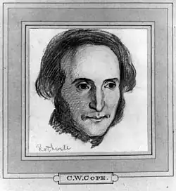 Richard Rothwell was born 20 November 1800 in Dublin. His father has generally been stated to be James Rothwell of Lisdaly, near Cloghen, King's Co. (Offaly), though primary source evidence suggests that he was the son of William Rothwell, gentleman, who appears in the 1820s as a publican of Ferbane, King’s Co., acquiring land at Ballicknahee, King’s Co. His mother was Elizabeth Rothwell (née Holmes). He had at least three siblings (a brother and two sisters) and possibly as many as six [3]. He trained to become a painter at the Dublin Society's school from 1814 until 1820 and won a silver medal for his work. At the age of 24, he was made a member of the newly established Royal Hibernian Academy and exhibited portraits there from 1826 to 1829. He subsequently moved to London and worked as a studio assistant to Thomas Lawrence,.[1] When Lawrence died in 1830, Rothwell completed many of his unfinished works and was poised to become the next foremost portrait painter in Britain and Ireland.[1] According to Leoneé Ormond's biographical article in the Grove Dictionary of Art, Rothwell "was at the height of his powers from 1829 to 1831"; he "was much influenced by Lawrence, but he lacked the incisiveness and flair of his master".[1] From 1831 to 1834, Rothwell toured Italy to study Italian art so that he could paint history paintings. When he returned to London, his popularity had evaporated.[2] Rothwell lived and exhibited works in Ireland, the United States, London, and Italy, but he never again achieved the same level of popularity he had reached in the late 1820s.[2]