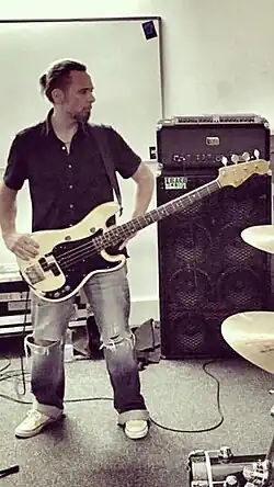 Vernon plays bass guitar, guitar and occasionally, drums. Key to his signature bass sound is the use of vintage Fender basses and Trace Elliot backline.