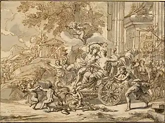 Richard van Orley was a very gifted graphic artist who produced many prints after his own designs or after those of other artists, including famous Flemish artists. An example is his The drunk Silenus after a painting of Rubens. Many of his drawings were designs for prints.[5]