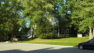 The land which makes up the neighborhood was originally the estate of John Richards, who built the Octagon House on his property in the 1850s. Richards gradually subdivided his land over the late nineteenth century, and by the early twentieth century he had completely split the property into residential lots. The land was near Northwestern College, and many professors at the college bought lots in the neighborhood for their homes. The houses in the district represent the popular architectural styles of the early twentieth century, including Queen Anne, Bungalow, and period revival styles such as Tudor and Dutch Colonial. Architect George Fred Keck, who later became well known for his Modernist work, designed the Tudor Revival Hans David & Helen Gaebler House in 1926.[2]