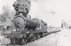 These 13 locomotives were part of a class of 521 2-8-0 tender engines that were built by several locomotive builders for the Railway Operating Division (ROD) of the Royal Engineers for use in France during World War One. These locomotives were based on the pre war Great Central Railway Class 8K 2-8-0 locomotives design by John Robinson After the armistice these locomotives were surplus and J & A Brown bought 13 of these locomotives, these were built by the North British Locomotive Company (9), Kitson & Company (1) and the Great Central Railway's Gorton Works (3). These 13 were shipped to Australia over a period from March 1925 to March 1927. The first three arrived complete on the SS Boorara in February 1926. They were unloaded in Sydney and hauled to Hexham. In late 1927 the rest arrived in crates on Brown's new ship the SS Minmi on its maiden voyage to Hexham. The dismantled locomotives were gradually reassembled with the last not being reassembled until 1931. All 13 were never in service at the one time with the maximum in service at the one time being ten in 1954. The class lasted until 28 June 1973 when the last ROD in service No. 24 was withdrawn.[32] Nos. 20 and 24 are preserved by the Dorrigo Steam Railway & Museum and No. 23 is preserved by the Richmond Vale Railway Museum.[33]