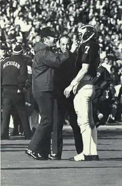 Head coach Bo Schembechler and Leach (#7) in 1975
