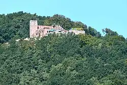 The remains of this castle are located on the side of the 613-metre-high Blättersberg mountain.